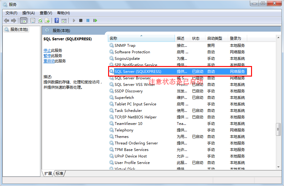 第三步,点击电脑开始-控制面板-管理工具-服务-SQL server(SQLEXPRESS)