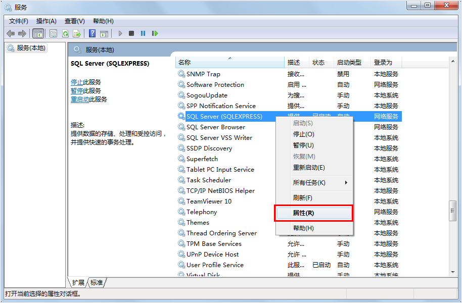 第四步,鼠标右击SQL server(SQLEXPRESS)