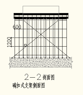 纵向间距120cm,顶部根据混凝土位置安装U型支托调整。碗扣支架横向设置2×60cm+1×20cm +8×60cm +1×20cm+2×30cm,平面布置的立杆纵向间距和横向间距均为60cm×60cm。支架立面图、平面图及侧面图如下图所示。