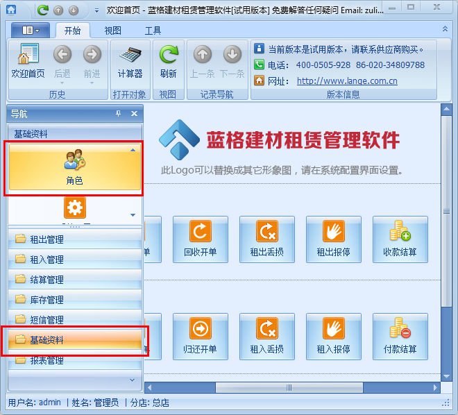 傲蓝建筑材料租赁管理软件设置不同登录用户的角色,以控制该用户的在租赁软件操作上的权限。例如仓库员不能建立收款单,业务员不能修改租出单等等各类权限限制,让员工各司其职,不出现混淆。